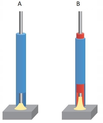 B Elektroda podwójnie otulona- Lepsza kontrola, bardziej skupiony i twardy łuk