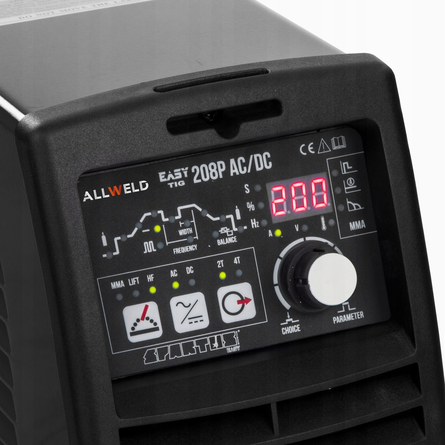 Marka: Spartus | Metody spawania: TIG AC, TIG DC, MMA | Zasilanie: AC 230V/50Hz | Prąd spawania: 200A | Sprawność: AC 35 [200A]/DC 40 [170A]